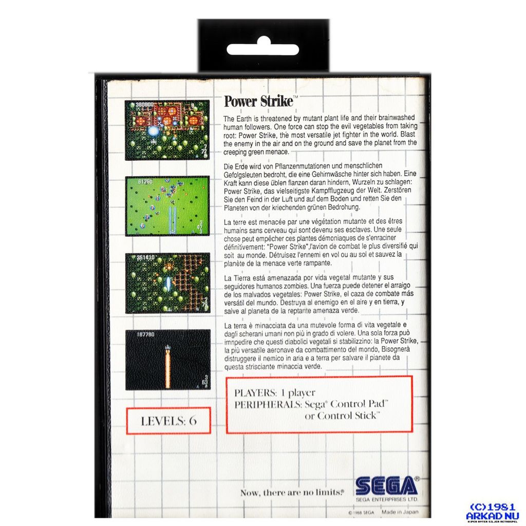 The first game was originally released in Japan under the name Aleste. The original, Japanese version contains an extra level and an anime styled storyline that lacks in the original release. A follow-up of the game, Aleste 2, was released as well. This game is entirely different from Power Strike II. Power Strike is very notable for being a Sega Master System game which could only be obtained by mail order directly from Sega in the US.