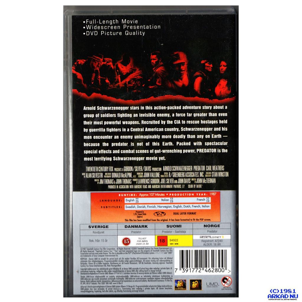 Beskrivning av PREDATOR UMD FILM PSP