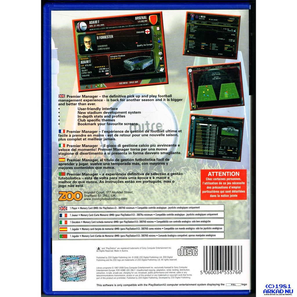 Premier Manager 09 gives you the chance to control every aspect of your favourite club from transfers and training to scouting and stadium development.