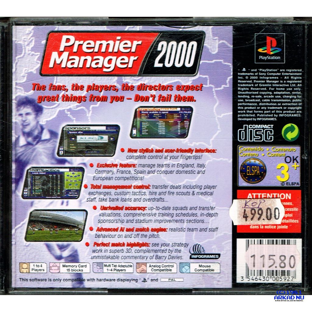 Premier Manager 2000 was developed by Infogrames Studios and published by Infogrames. It was released in 2000 for the Sony PlayStation. In 2003 it was given a budget re-release by the new Premier Manager intellectual property owners Zoo Digital Publishing.