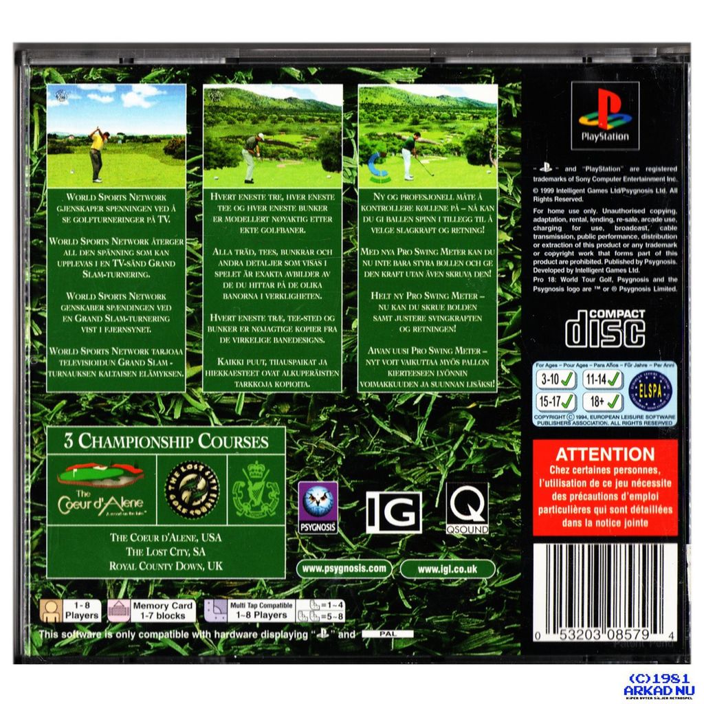 PRO 18 WORLD TOUR GOLF PS1 - SPELET HAR SVENSK TEXT