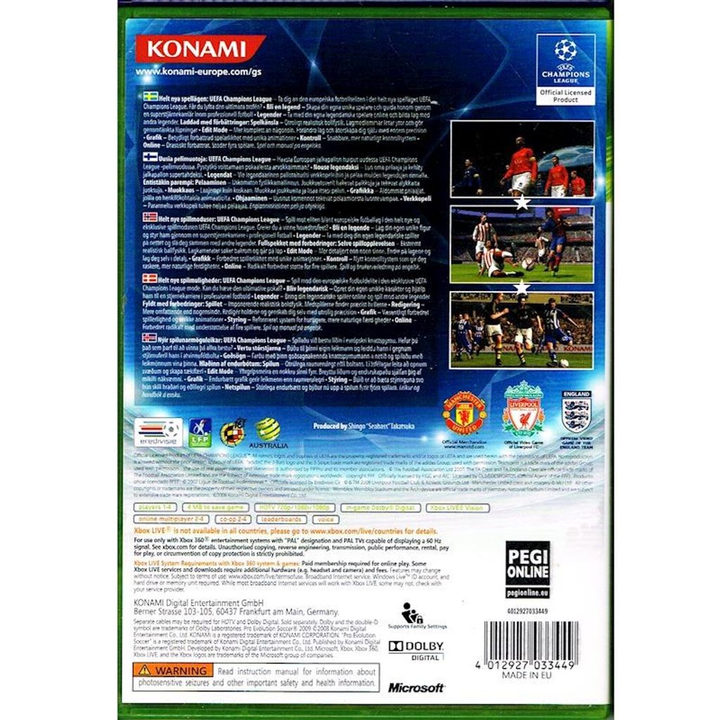 Beskrivning av PRO EVOLUTION SOCCER PES 2009 XBOX 360