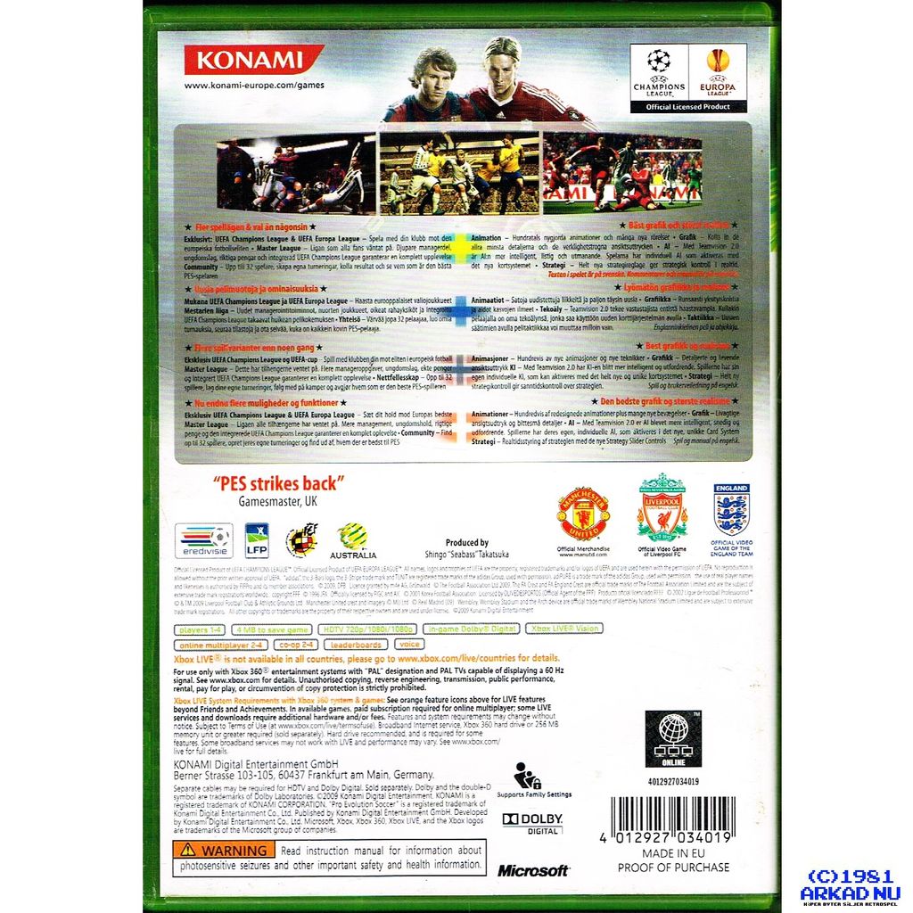 Beskrivning av PRO EVOLUTION SOCCER PES 2010 XBOX 360