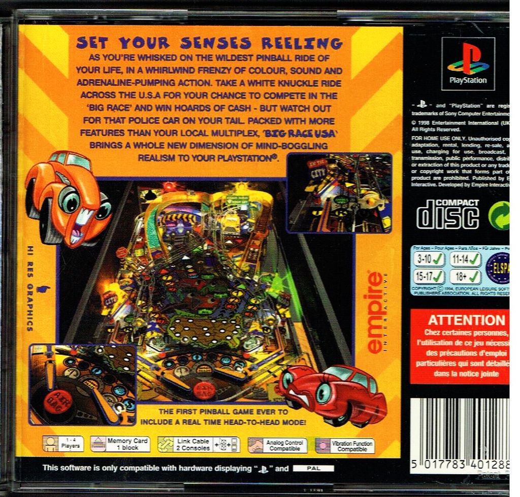 PRO PINBALL BIG RACE USA PS1 - SLES-01211