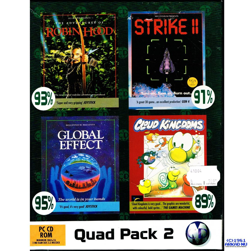 QUAD PACK 2 PC BIGBOX 299 kr PC-QUADPACK2-CB Beskrivning av QUAD PACK 2 PC BIGBOX QUAD PACK 2 PC BIGBOX INNEHÅLLER SPELEN: ROBIN HOOD STRIKE II GLOBAL EFFECT CLOUD KINGDOMS I BOX UTAN MANUAL Relaterade kategorier
