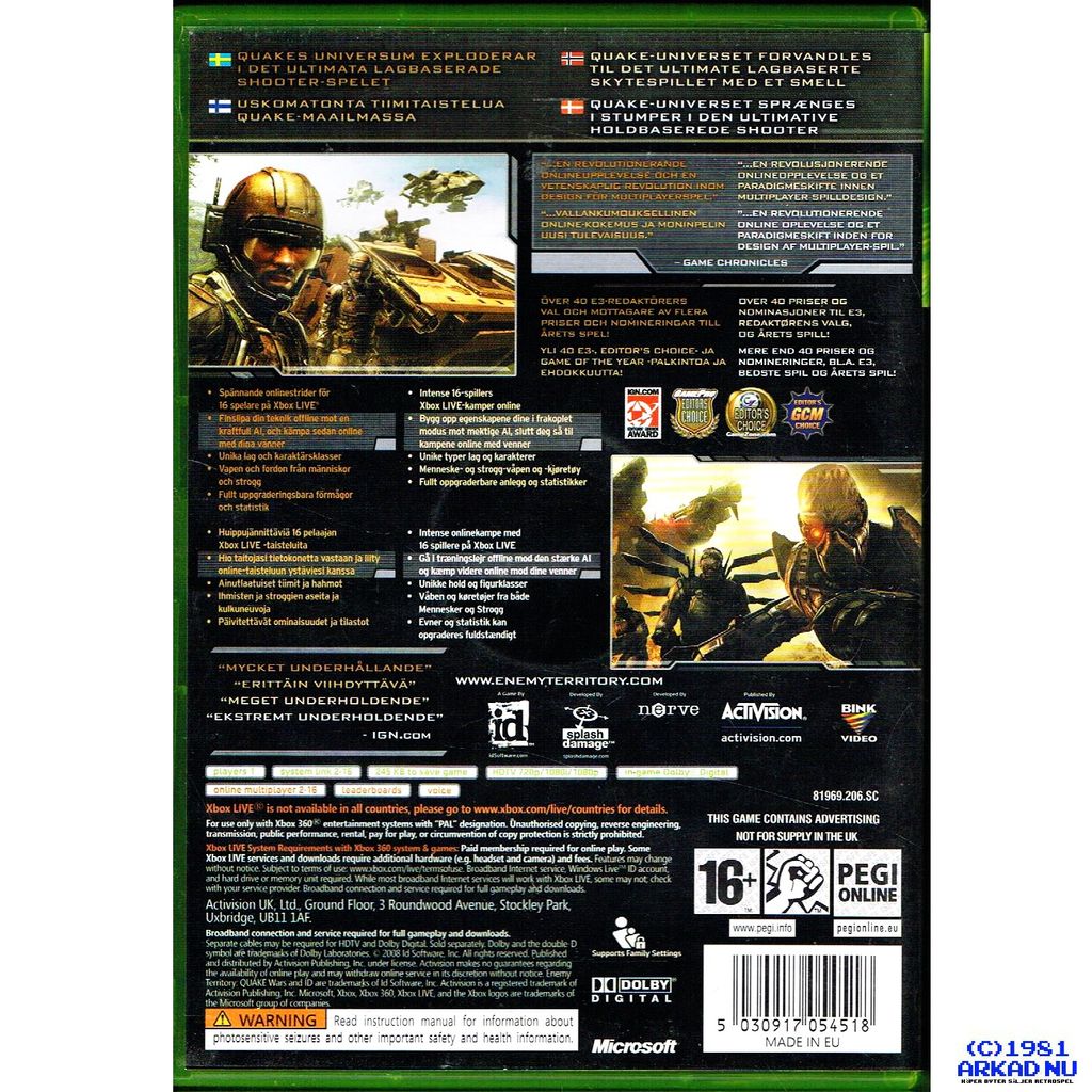 QUAKE WARS ENEMY TERRITORY XBOX 360