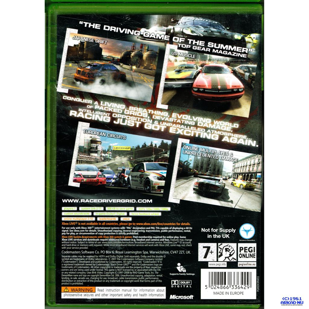 Beskrivning av RACEDRIVER GRID XBOX 360