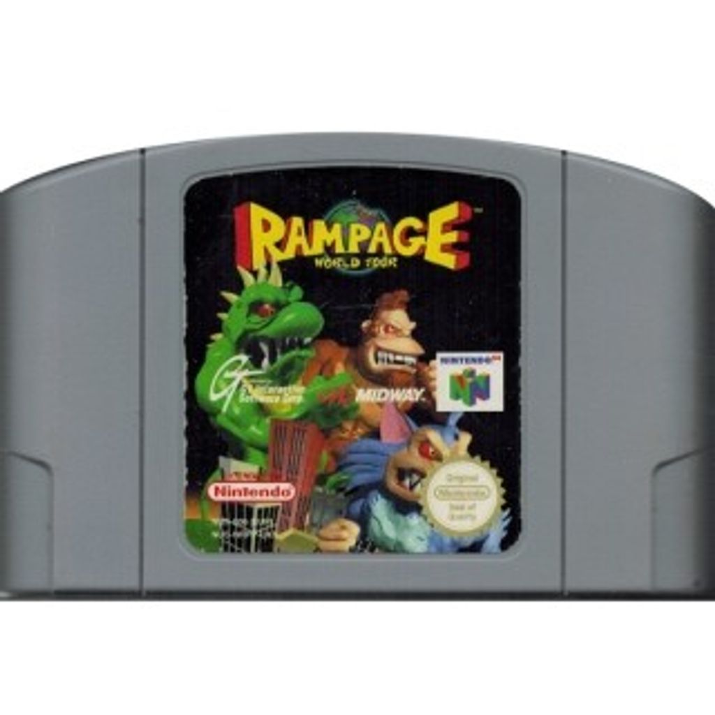 Rampage World Tour is a video game released in 1997 and is the second game in the Rampage series. The game was developed as an arcade game for Midway by Game Refuge Inc. designers Brian Colin and Jeff Nauman, who conceived and designed the original back in 1986. It was then ported to the Sega Saturn, Nintendo 64, Game Boy Color, PlayStation, Microsoft Windows and as a download on the PlayStation 3's PlayStation Network only through Midway Arcade Treasures and has been re-released on Midway Arcade Treasures 2 as well as being an unlockable in Rampage: Total Destruction.