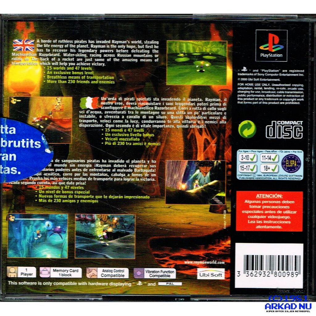 Beskrivning av RAYMAN 2 THE GREAT ESCAPE PS1