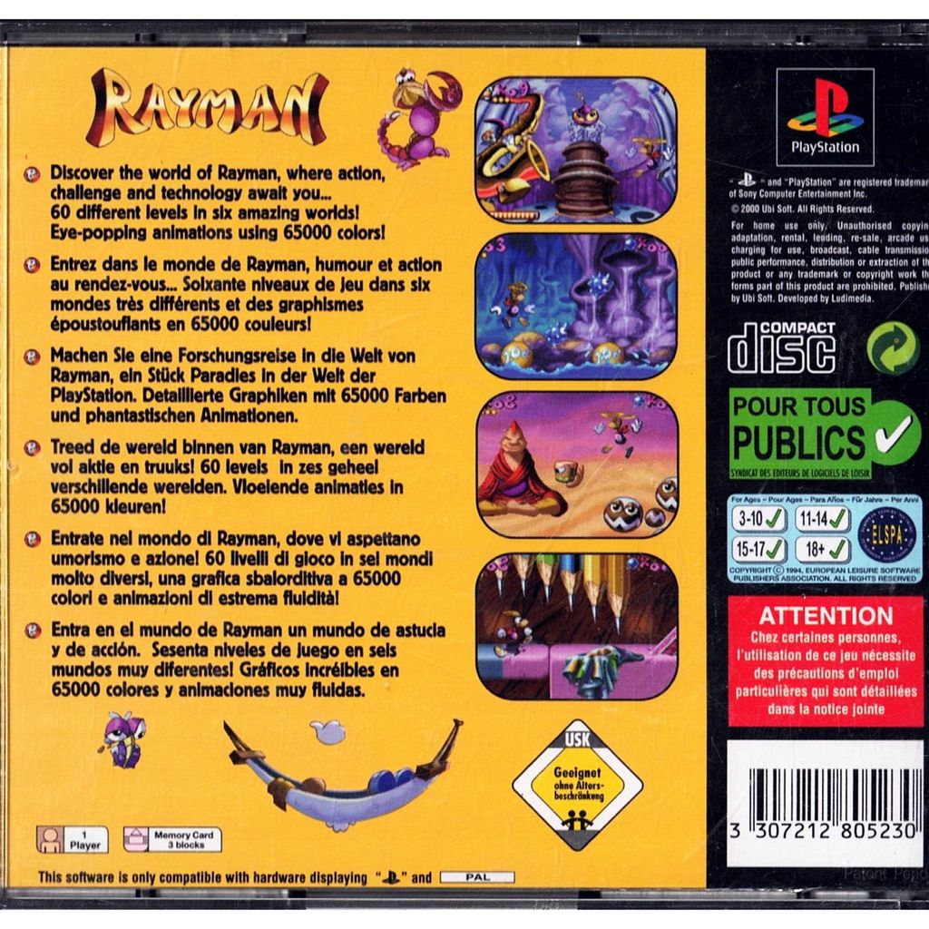 Beskrivning av RAYMAN PS1