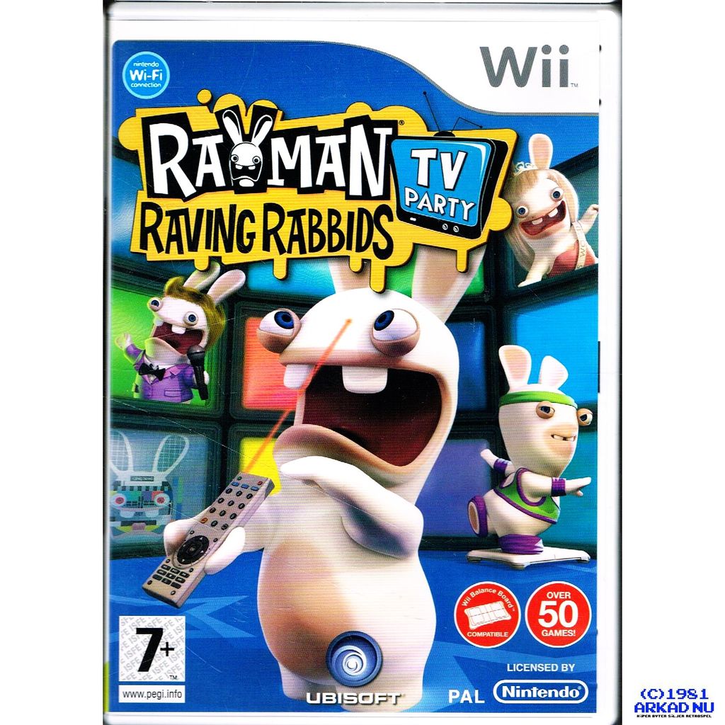 Rayman Raving Rabbids: TV Party known during development as Rayman Raving Rabbids 3, is a video game developed by Ubisoft and is the third installment in the Rayman Raving Rabbids series. A teaser trailer was released on April 29, 2008. The trailer, showing a Rabbid swallowing a Wii Balance Board, indicating the gameplay would make use of the device and as such would be a Nintendo exclusive, just as the previous title of the series, Rayman Raving Rabbids 2.
