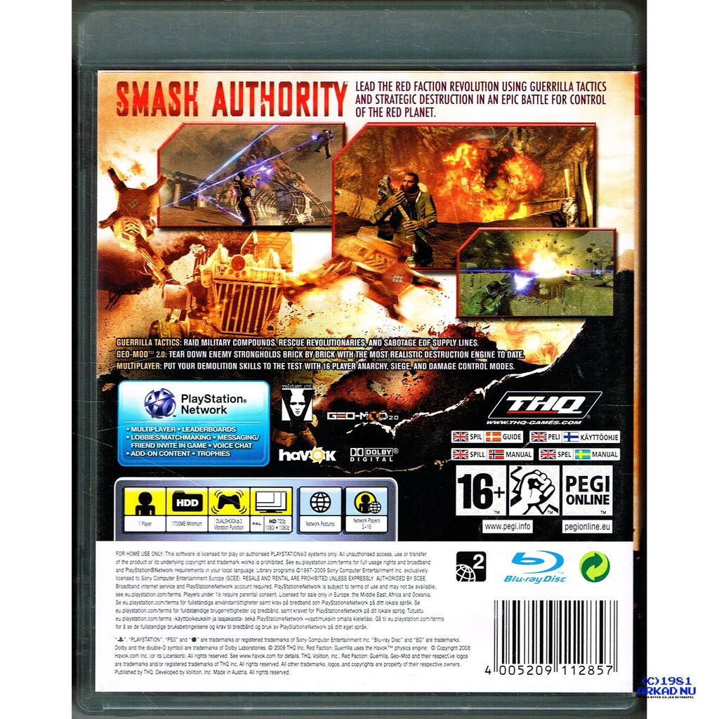 RED FACTION GUERRILLA PS3 SVENSK UTGÅVA-BLES-00496