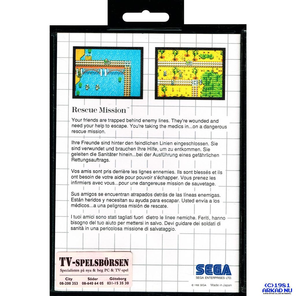A light-gun game for the Sega Master System in which you provide cover for medics as they go behind enemy lines to rescue wounded soldiers.