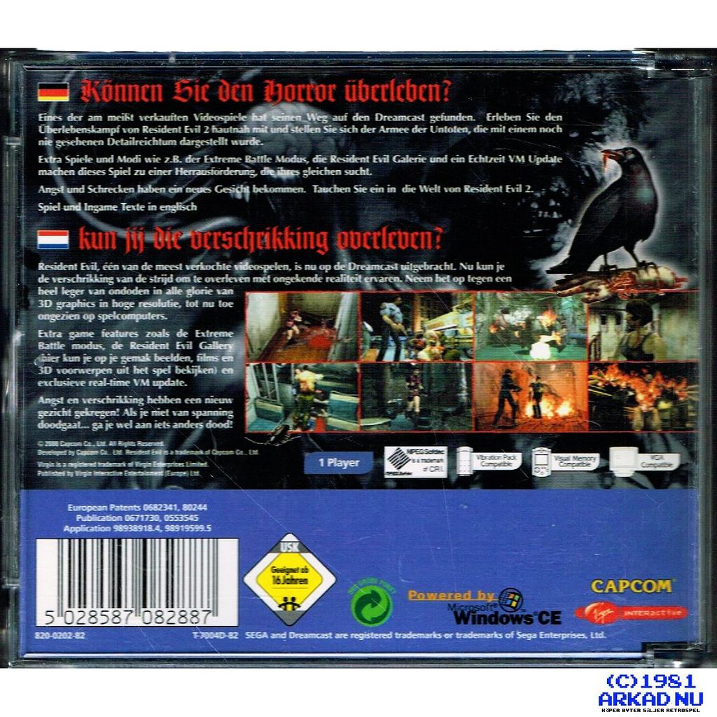 RESIDENT EVIL 2 DREAMCAST - T-7004D-82 TYSK VERSION MED ENGELSK SPRÅK