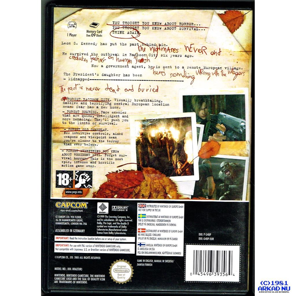 🔥 Följ Leon S. Kennedy på ett farligt uppdrag i en isolerad europeisk by för att rädda presidentens dotter. Möt skrämmande fiender, lös pussel och överlev mot alla odds – allt i en av GameCubes mest hyllade titlar. Den svenska utgåvan gör den extra eftertraktad bland samlare.