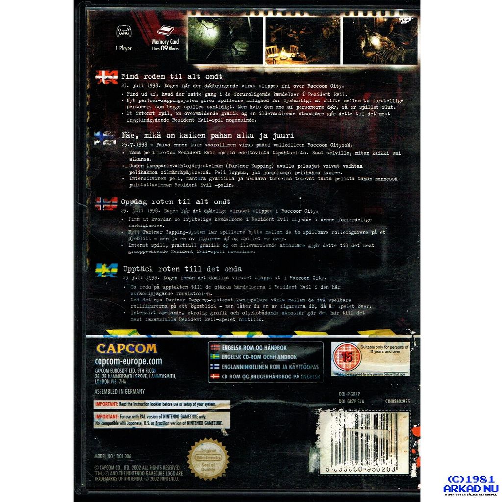 RESIDENT EVIL ZERO GAMECUBE SVENSK UTGÅVA