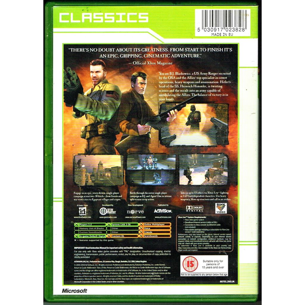 RETURN TO CASTLE WOLFENSTEIN TIDES OF WAR XBOX- 80791.206.UK