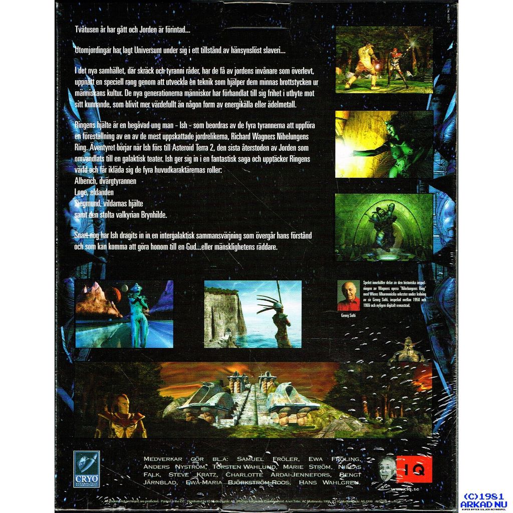 Ring: The Legend of the Nibelungen is a 1998 point-and-click adventure video game for Microsoft Windows and Mac OS developed by Arxel Tribe and published in North America by Red Orb Entertainment and in Europe by Cryo Interactive. The game is based on Richard Wagner's four opera cycle Der Ring des Nibelungen, and features music from various performances of the Vienna Philharmonic Orchestra conducted by Georg Solti from 1958 to 1964,[3] chosen in collaboration with PolyGram and Decca. French comic-book artist Philippe Druillet also worked on the game, providing much of the artwork.