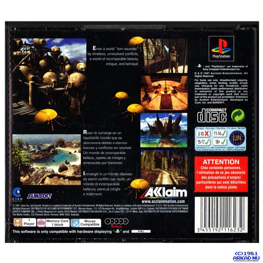 Beskrivning av RIVEN THE SEQUEL TO MYST PS1