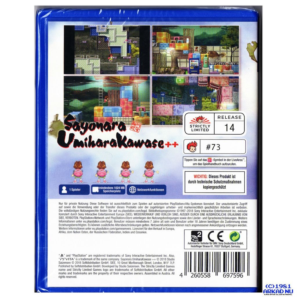 Sayonara UmiharaKawase++, officially licensed PlayStation Vita game. Strictly Limited Games exclusive, limited to 1,994 copies worldwide, individually numbered.Making its debut on the Super Famicom in 1994, the series of Umihara Kawase has become a Japanese cult title. This game offers the ultimate experience of the series, as it not only offers the modern version of the game, but also the original game from 1994.