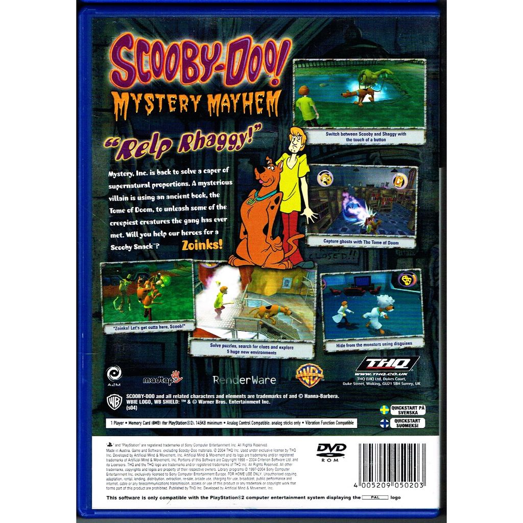 Scooby-Doo! Mystery Mayhem is a video game based on the Hanna-Barbera/Warner Bros. cartoon Scooby-Doo. The game was released by Artificial Mind and Movement, THQ and Warner Bros. in 2003 for the Game Boy Advance. It was later released for the PlayStation 2, GameCube, and Xbox in 2004.