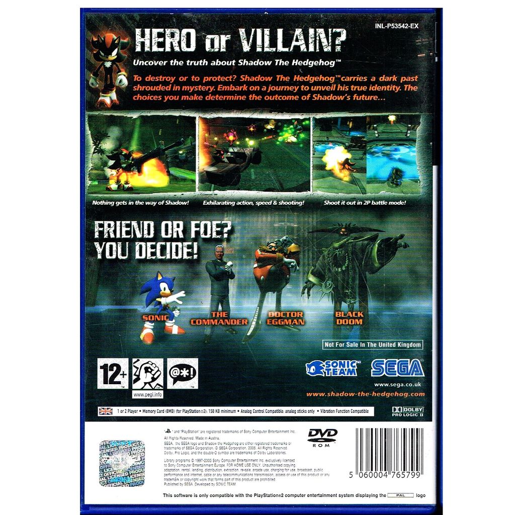 SHADOW THE HEDGEHOG PS2 - SLES-53542