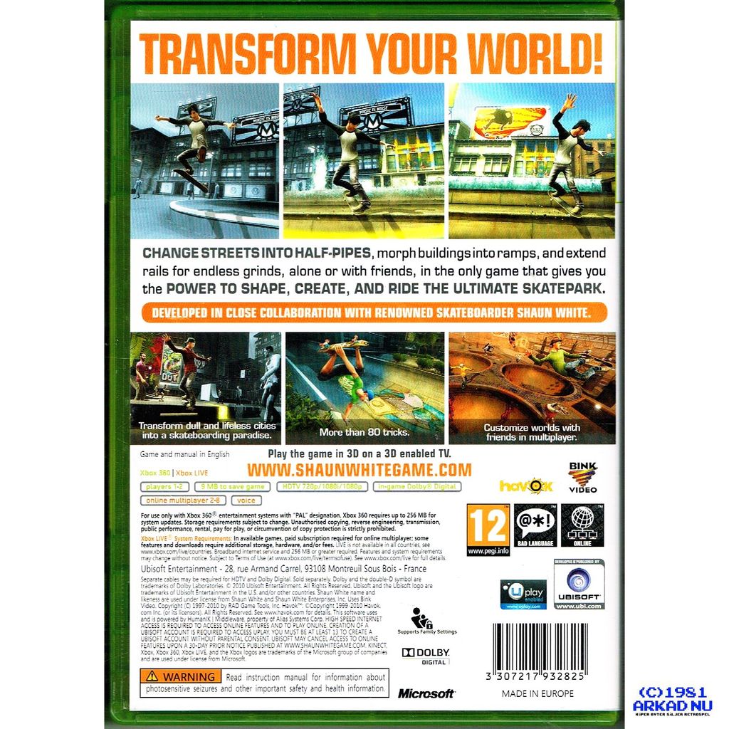 Beskrivning av SHAUN WHITE SKATEBOARDING XBOX 360