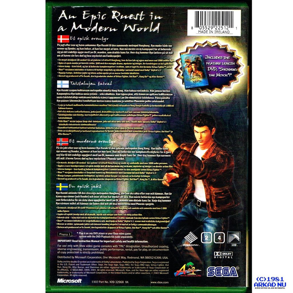 Beskrivning av SHENMUE II XBOX MED FILMEN