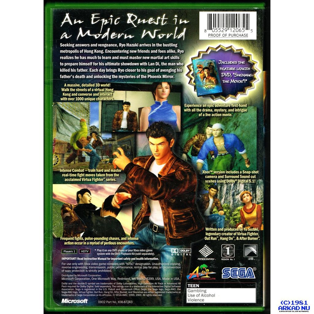 Beskrivning av SHENMUE II XBOX MED FILMEN NTSC USA