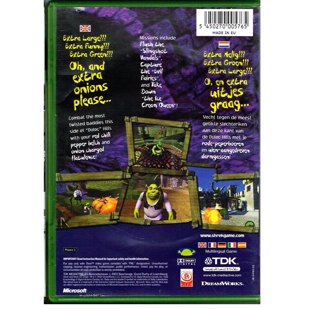 Shrek is a 2001 video game developed by Digital Illusions CE (DICE) and published by TDK Mediactive for the Xbox, based on the 2001 animated Dreamworks film of the same name. The game was released on 14 November 2001 as one of twenty-two North American launch titles for the Xbox, and later in Europe on 14 March 2002, also as a launch title for the system. A port of the game, called Shrek Extra Large, was released for the Nintendo GameCube on 31 October 2002 in North America [1] and on 24 October 2003 in Europe.