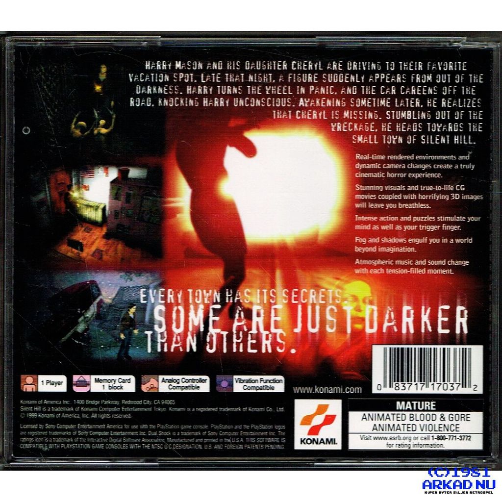 Beskrivning av SILENT HILL PS1 NTSC USA BLACK LABEL