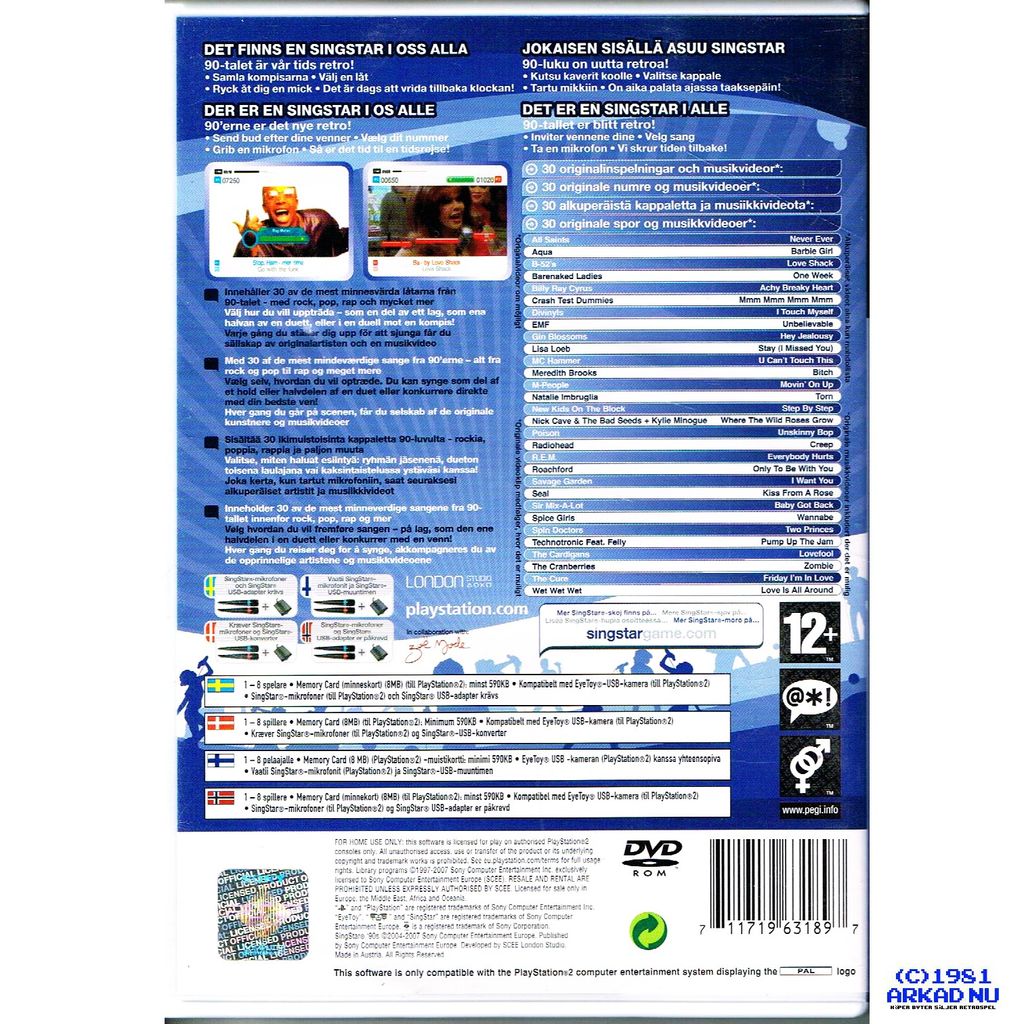 Beskrivning av SINGSTAR '90S PS2