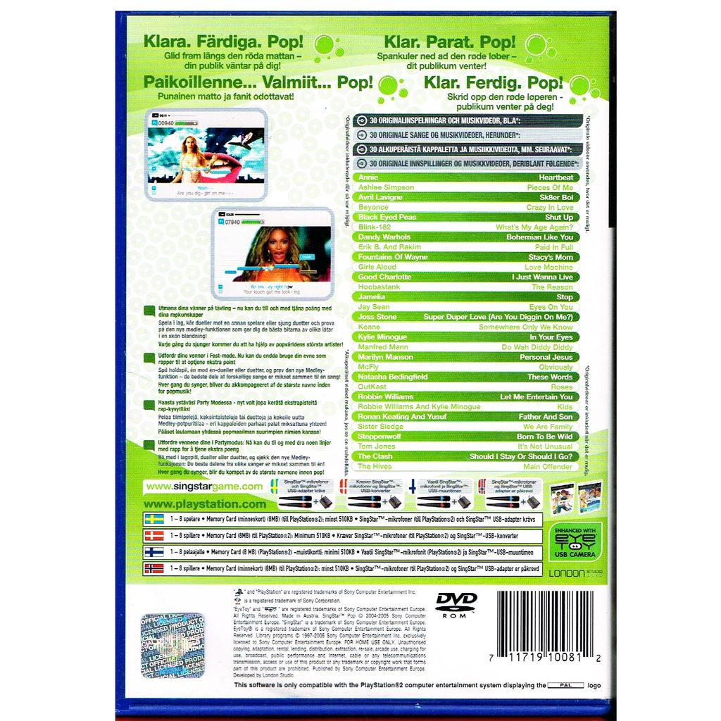 Beskrivning av SINGSTAR POP PS2