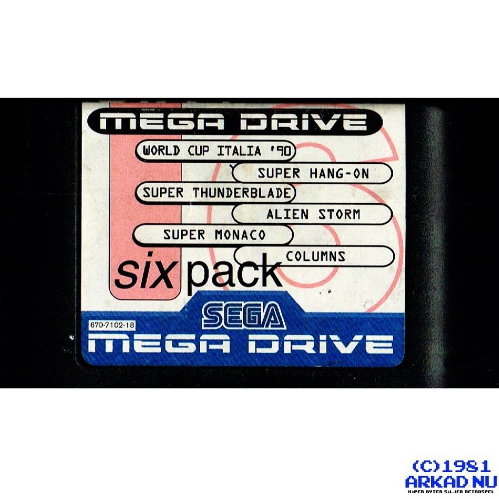 Beskrivning av SIX PACK - WORLD CUP ITALIA 90 - SUPER HANGON - SUPER THUNDERBLADE - ALIEN STORM - SUPER MONACO - COLUMS MEGADRIVE