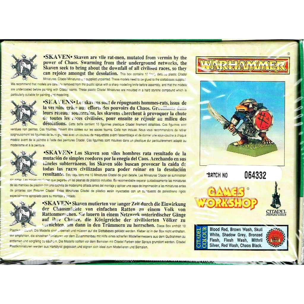 Beskrivning av SKAVEN WARHAMMER GAMES WORKSHOP 1994 SKAVEN WARHAMMER GAMES WORKSHOP 1994 - 0761 - BATCH 064332 DETTA ÄR EN NY PRODUKT