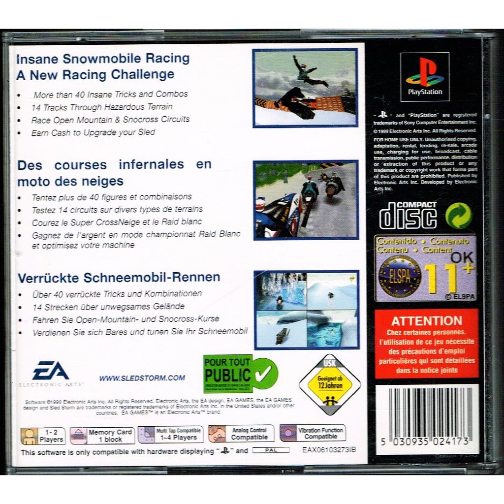 Sled Storm is a series of snowmobile racing video games published and developed by Electronic Arts and released in North America on July 31, 1999 and in Europe on August 11, 1999. It gained critical acclaim due to its original concept of being one of the first snowmobile racing titles. The series currently consists of two games, both of which are named simply Sled Storm.