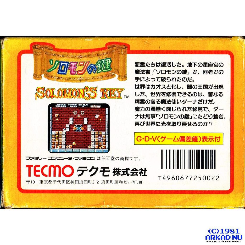 Beskrivning av SOLOMON NO KAGI (SOLOMONS KEY) FAMICOM