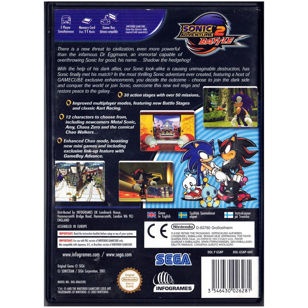 SONIC ADVENTURE 2 BATTLE GAMECUBE SVENSK UTGĂ…VA - DOL-GSMP-UKV