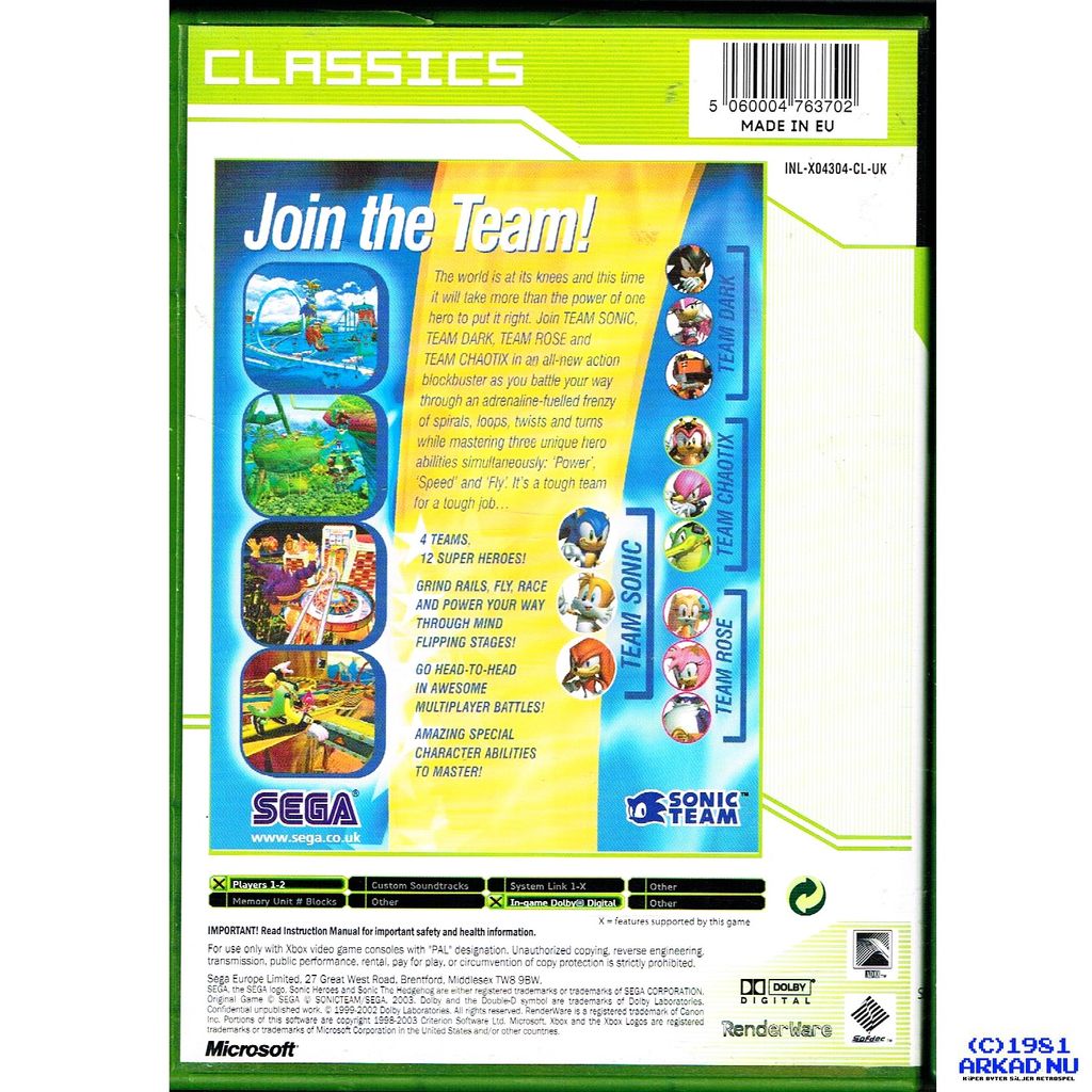 SONIC HEROES XBOX CLASSICS - SE04304E-SE-CL