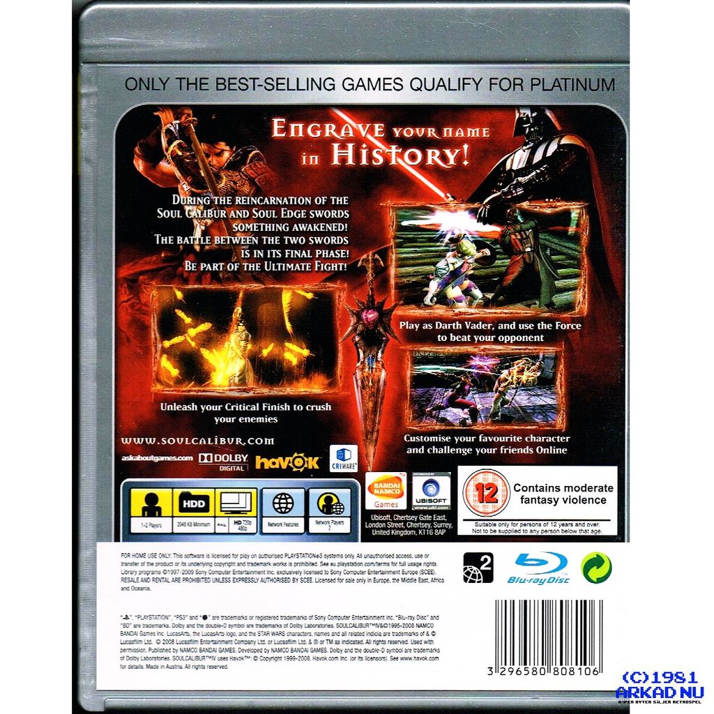 SOUL CALIBUR IV PS3 PLATINUM - BLES-00296