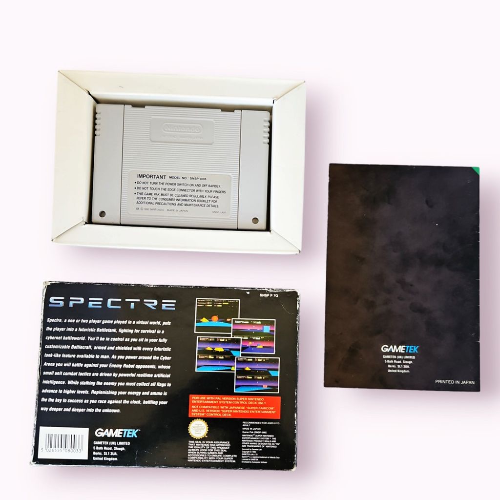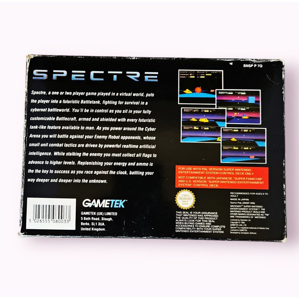 Spectre is a 3D shooter where the player drives a little red car/tank and blasts away enemies. The gameplay is similar to Battlezone, and obviously inspired by it.