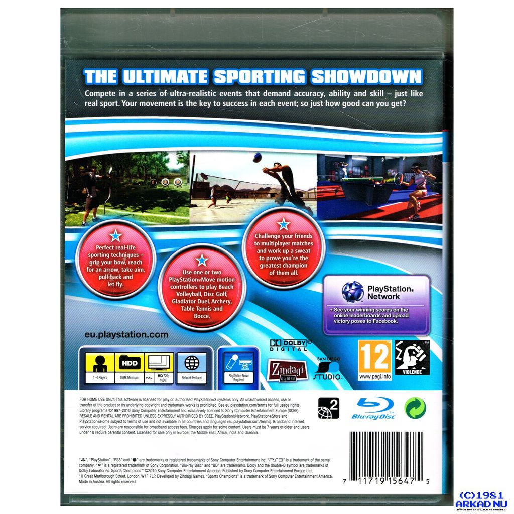 Sports Champions is a 2010 sports video game developed by San Diego Studio and Zindagi Games and published by Sony Computer Entertainment for PlayStation 3, which utilizes PlayStation Move. It was officially unveiled at the 2010 Game Developers Conference in San Francisco.[1] The game is a collection of modern and medieval sports games published by Sony Computer Entertainment and is jointly developed by San Diego Studio and Zindagi Games as a launch game for the PlayStation Move which would be bundled with the controller in several regions