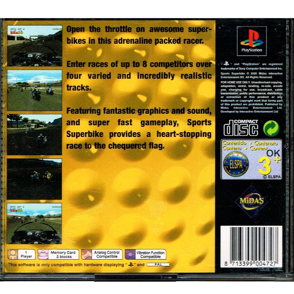 Sports Superbike is a budget PS1 game that was released only in PAL regions.