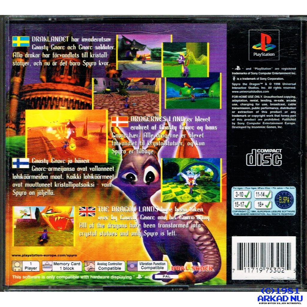 Beskrivning av SPYRO THE DRAGON PS1