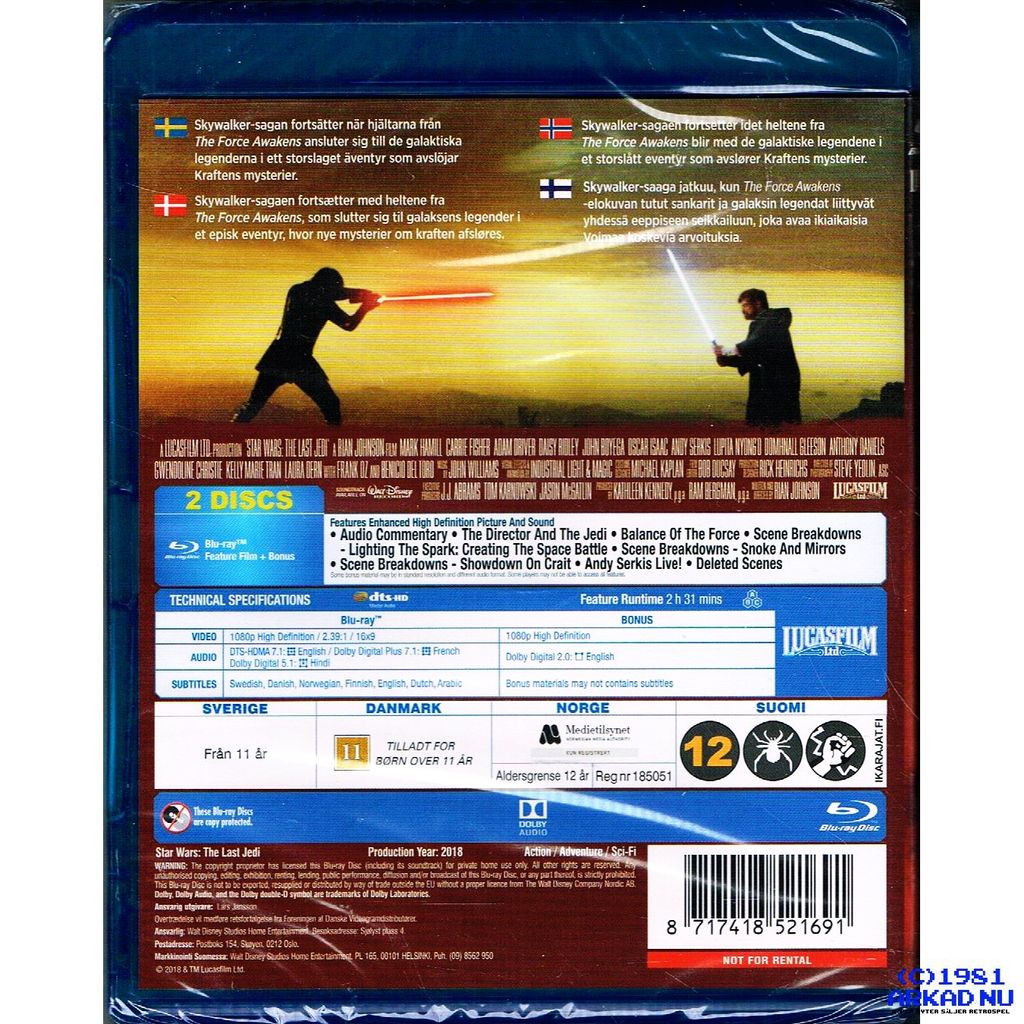 Beskrivning av STAR WARS THE LAST JEDI BLU-RAY STAR WARS THE LAST JEDI BLU-RAY -- BXY-6048799-Z6A DETTA ÄR EN NY PRODUKT