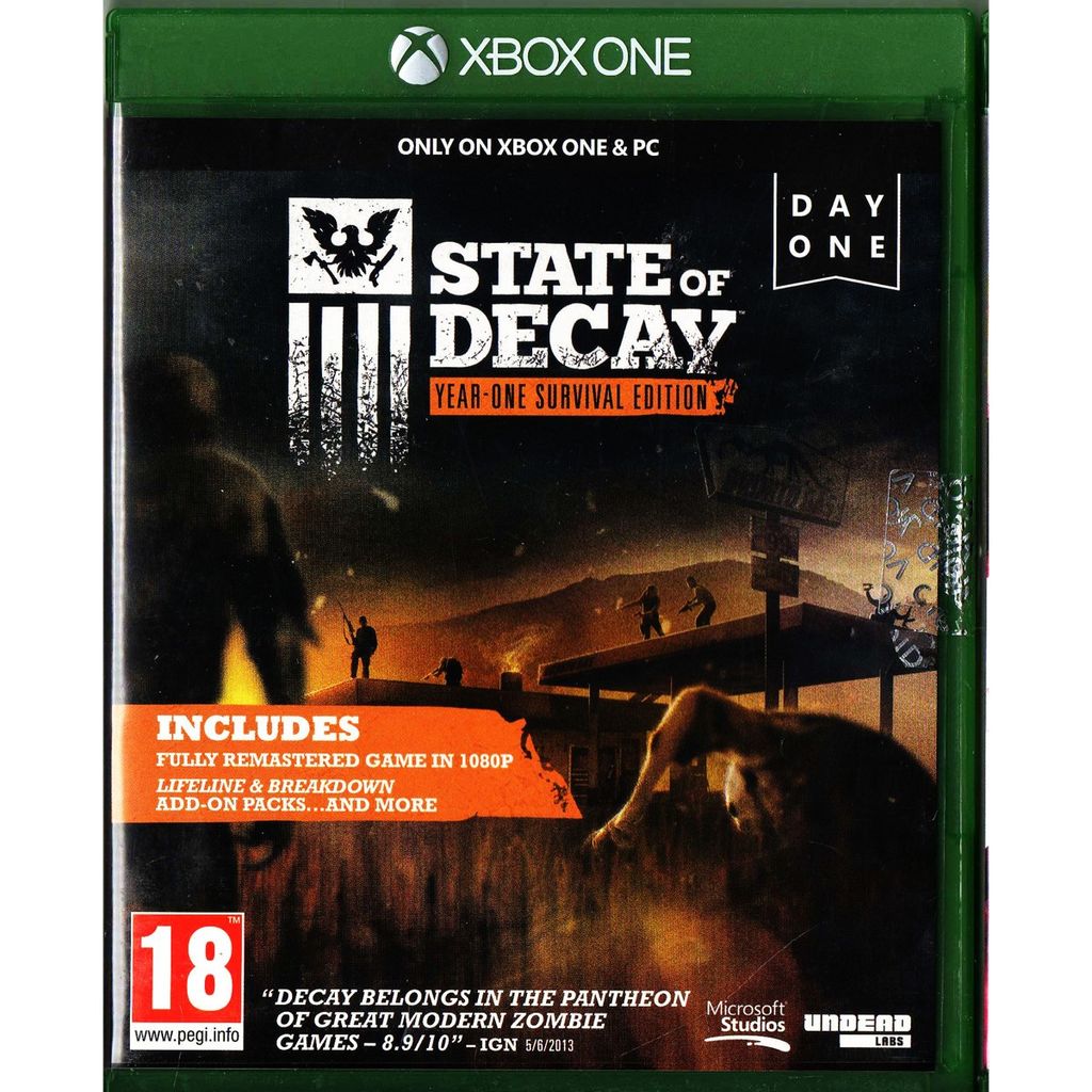 State of Decay: Year One Survival Edition tar den hyllade zombie- och överlevnadsserien till Xbox One. State of Decay, tillsammans med de stora tilläggen Breakdown och Lifeline, är nu omgjort i vacker 1080p-upplösning. Nya uppdrag, vapen och extra innehåll, tillsammans med förbättrade ljuseffekter, texturer, animationer och bättre stridsmekanik, kommer dra dig ännu djupare ned i en pandemidrabbad värld. Hur ska du överleva zombieapokalypsen?