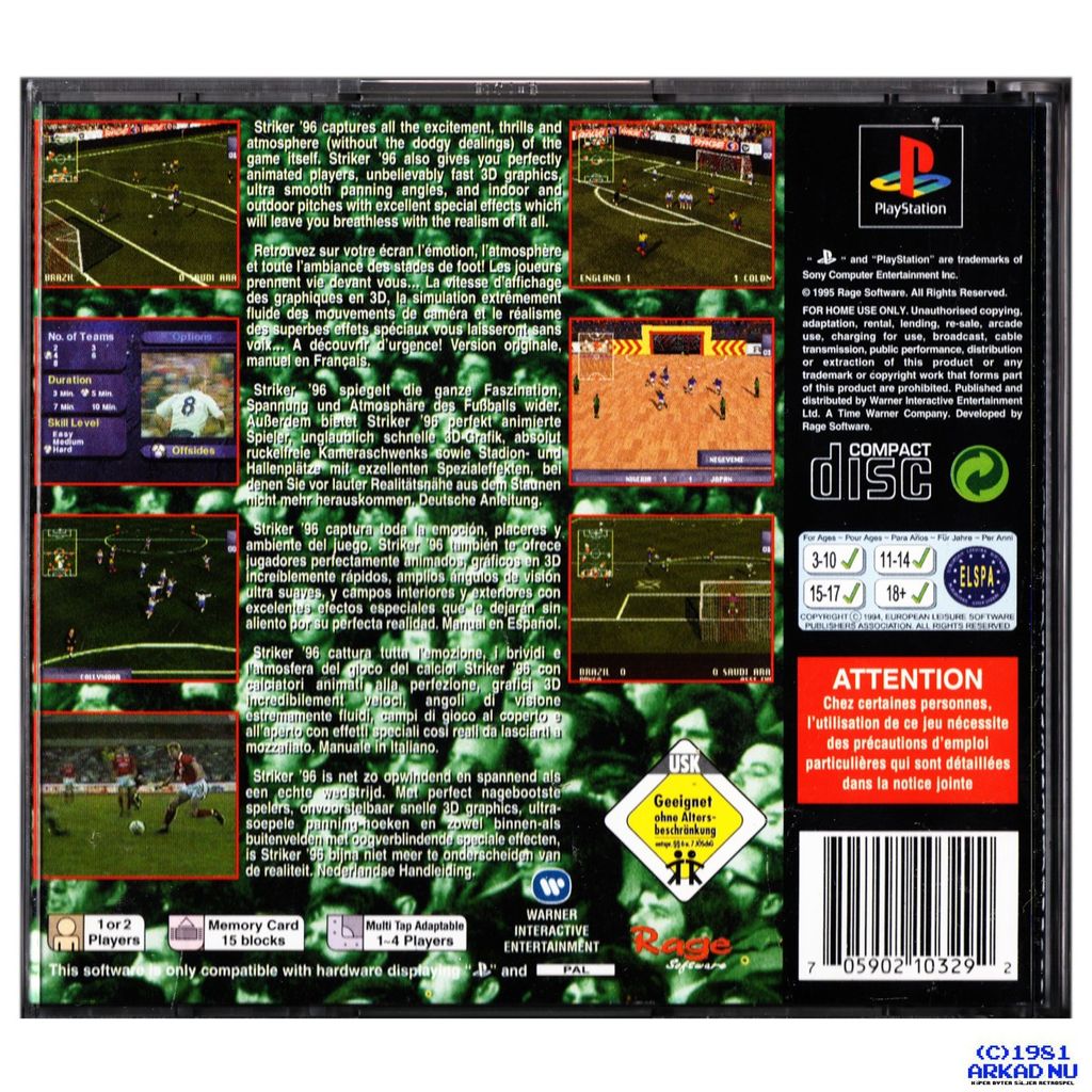 Striker '96 (known in Japan as Striker: World Cup Premiere Stage) was released for the PlayStation, Sega Saturn and MS-DOS. Striker '96 is known for being the first soccer game on the original PlayStation.