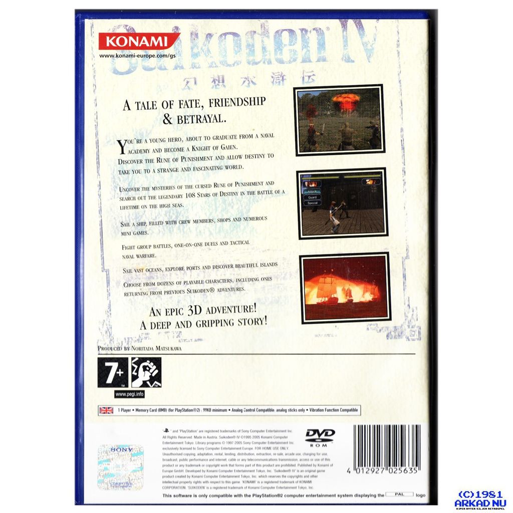Suikoden IV is a role-playing video game developed and published by Konami for the Sony PlayStation 2 video game console and is the fourth installment of the Suikoden video game series. It was released in August 2004 in Japan, and early 2005 in North America and Europe.