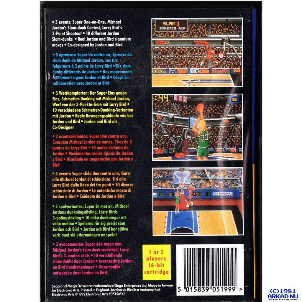 Michael Jordan of the Chicago Bulls and Larry Bird of the Boston Celtics were the only two players in the game, which allowed the player to participate in a one-on-one basketball game. Mini-games included a slam dunk contest (utilizing Jordan) and a three-point contest (utilizing Bird).Mega placed the game at #7 in their list of the 10 Worst Mega Drive Games of All Time.Evidence shows that the game may be rigged so that Larry Bird wins more often than not