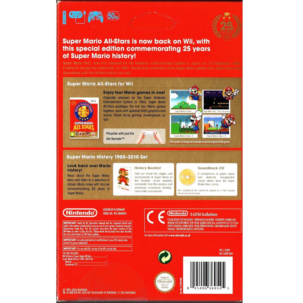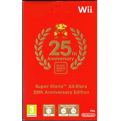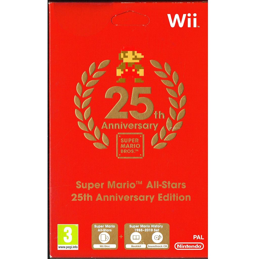 In 2010, Super Mario All-Stars was ported to the Wii and released as Super Mario All-Stars 25th Anniversary Edition to celebrate the 25th anniversary of the release of Super Mario Bros. It was released in Japan on October 21, 2010 and in all other regions in December 2010 on Wii optical disc. The game disc contains an emulation of the original SNES ROM image, with support for the Wii Remote, Classic Controller, and GameCube controllers. A 32-page booklet detailing the history of the Super Mario franchise and an audio CD containing music from each Super Mario game are bundled with the game disc